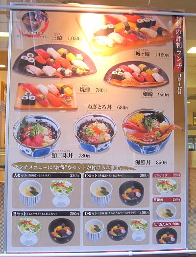「松」や「桜」など木の名前だったランチにぎりメニューは、三崎、城ヶ崎、剣崎、焼津など、漁港の名前に。