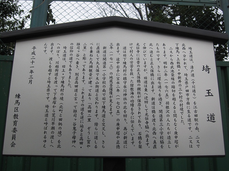 以前ご紹介した練馬区独立記念の碑の横に、もう一つ、「埼玉道」という碑があります。