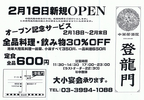 2010年2月18日 中華居酒屋登龍門オープン!!