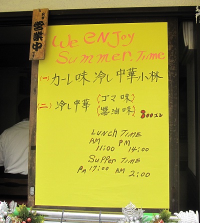 たまたま通りかかりに冷し中華の店外メニューを見つけ、カレー味冷し中華に興味を惹かれ入店。聞いてみると偶然ですが、本日スタートとの事。