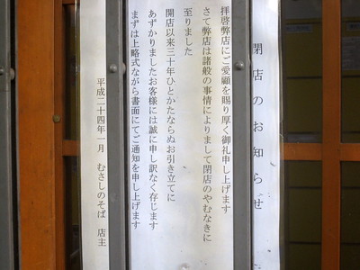 そば・うどん【閉店】むさしのそば 住所 練馬区旭丘1丁目76-8 営業時間 平日7:00~22:30 日・祝7:00~21:30 定休日 無休 WEB 食べログ 2012年1月15日閉店 江古田唯一の立ち食いそば 跡地は戸倉そば